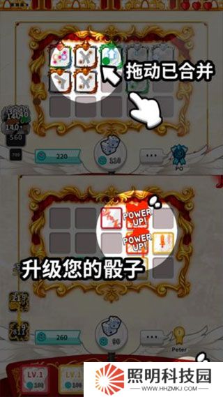 2、不同的骰子攻擊方式也不一樣,你能夠通過合成的方式來提升骰子的等級,升級它們的火力。