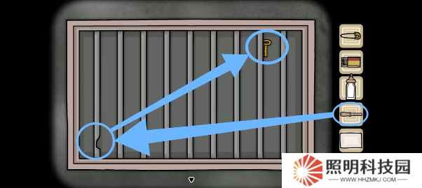 3、用銼刀割斷下水道的鐵桿,再用其撥動(dòng)并拿到鑰匙。