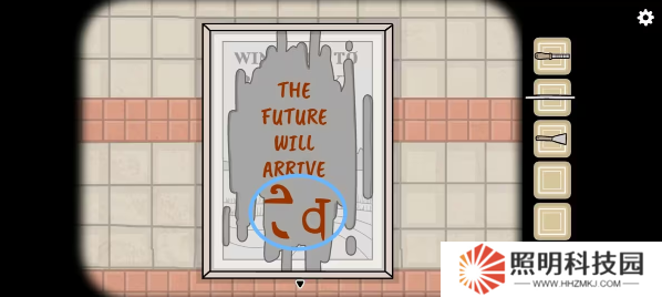 6、接著用刮刀劃開墻上的海報(bào)獲得符號(hào)(羅斯胸口懷表的提示)。