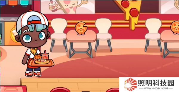 2、只需輕輕點擊招牌,各種美味的披薩就會展現在你眼前,還有可愛的人物陪伴。