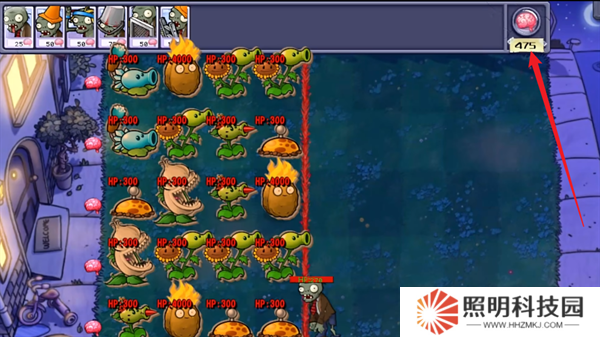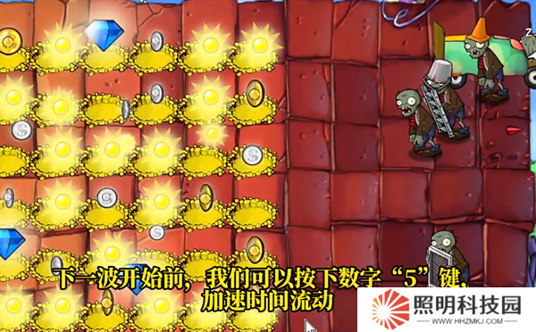 5、在完成這一關內部的三波僵尸進攻之后,暫時不要退出游戲,接下來不會由任何的僵尸出來,就能夠開始進行刷金幣的操作。