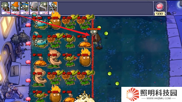 2、通過消耗指定數量的腦子,你就能夠在關卡的紅線右側召喚僵尸來與植物之間進行作戰。