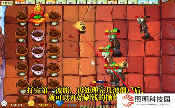 10、打完第一波旗,并處理完成當前場上的僵尸之后,就能夠開始進行刷鉆石的操作。