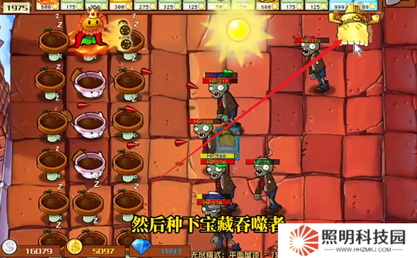 9、開始進行作戰之后種植一株向日葵女王就可以了,如果覺得不保險的話,可以種植兩株。
