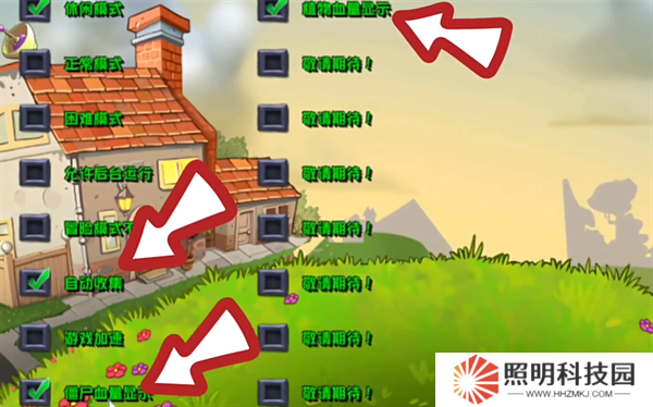 4、除此之外,控制臺當中還會存在著一些輔助的功能,自動收集讓你不用再關卡攻略的過程之中主動的點擊金幣戰術,更加的省力,僵尸血量顯示以及植物血量顯示讓你能夠對戰斗的局面獲得更好的把握,從而輕松的獲取到勝利。