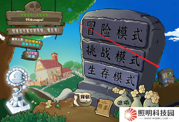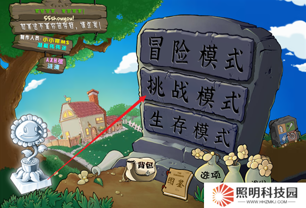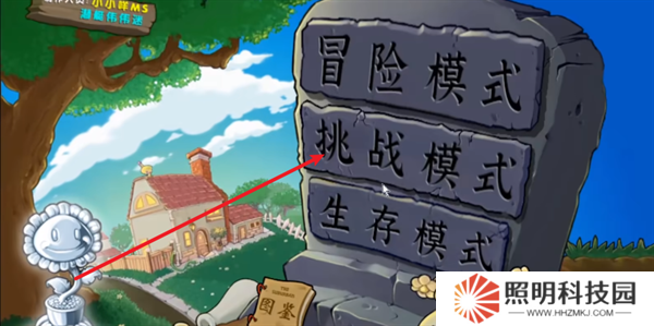 1、玩家首先在本站里面下載安裝完成植物大戰僵尸2.2版本,登錄到游戲的主頁面之后,選擇挑戰模式。
