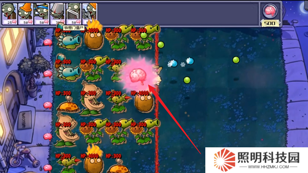 4、關卡核心的目標就是讓僵尸可以吃掉地圖道路盡頭的腦子,將所有的腦子都吃干凈之后,你就能夠獲得游戲的勝利。