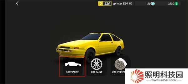 9、另外玩家還可以自己改裝車輛,比如說(shuō)給車身?yè)Q個(gè)顏色,點(diǎn)擊主頁(yè)下方第四個(gè)按鈕,然后點(diǎn)擊【body paint】。
