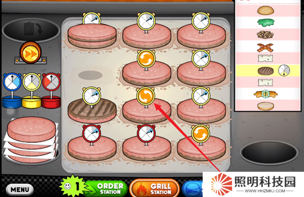 5、當肉餅的兩面都烤好之后,玩家們就能夠將其放置在右側。