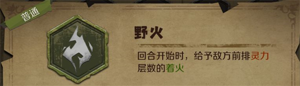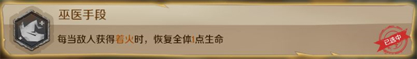 專屬卡牌“焚荒”能提供一個穩定的全體著火buff,配合初始天賦“巫醫手段”可以在前期擁有較強的恢復能力。