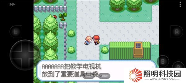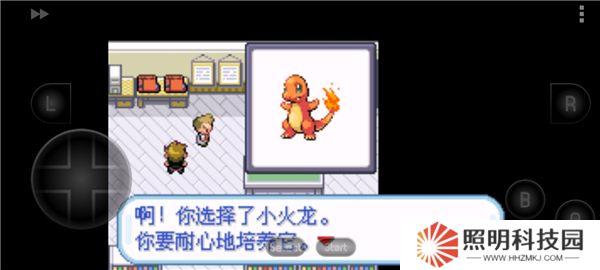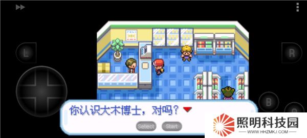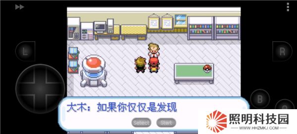 3、首先下樓和媽媽對(duì)話,然后出門直奔上面的草叢,在快進(jìn)入草叢時(shí),大木博士出現(xiàn)了,把主角帶到他的研究所,然后讓我們從右邊的桌上的精靈球中選擇一個(gè)作為初始的怪獸。