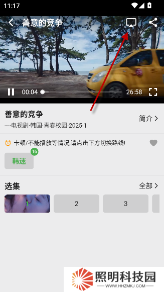 點(diǎn)擊右上角的tv圖標(biāo)就可以在線投屏播放了