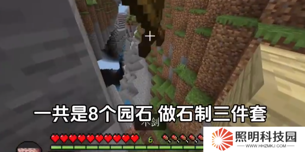 3.第一天可以平安度過,有個礦洞進去挖點石頭,共是8個圓石做石制三件套,再收集幾個就能用熔爐燒肉了。