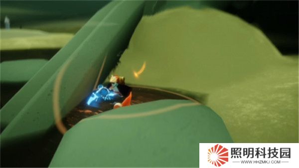 2、然后我們視線往左轉,飛向山洞上的樹屋前面。最后我們進入秘密花園樹洞,在旁邊即可找到膽小鬼先祖了。