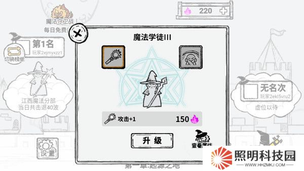 2、首先點擊【天賦】,玩家可通過闖關獲取的靈魂升級魔法師屬性,如攻擊力等。