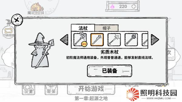 3、然后點擊【更換裝備】,在這里可以更換魔法師的法杖和帽子。