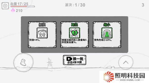 5、每通過一個波次還可選取一個技能卡牌,可用來提升角色戰力。