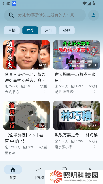 首頁十分簡潔,只有直播、推薦、熱門和番劇四個類別,沒有任何2265廣告,支持看直播。