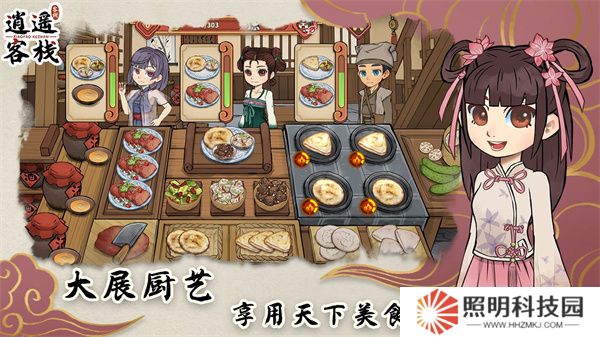 2.多種地區美食等待玩家進行研習制作,用美食吸引各種客官,可與客官進行交互了解他們的故事。
