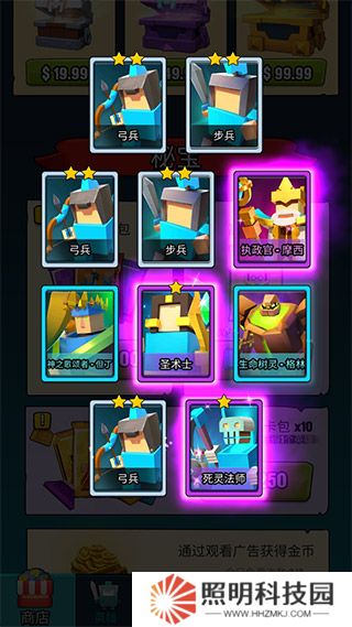 4、挑戰的時候通過不斷的抽取新的兵種,將相同星級的同-兵種可以進行合并升級。