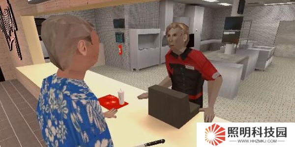 4.夜幕降臨,在醒來以后尋找到一家漢堡店,名為“曼尼漢堡店”。