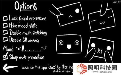 為沒有菜單按鈕的用戶添加了屏幕選項按鈕。在1.3內(nèi)容中向左或向右傾斜以眨眼,臉部選擇菜單,0u0現(xiàn)在會對閑置一段時間做出反應,稍后再將他接起,對插入電源也會做出反應睡眠預防模式可防止屏幕關閉,現(xiàn)在可以手動修改心情欄,更改了搖動行為。現(xiàn)在需要更長時間、更劇烈的搖晃,現(xiàn)在關閉應用程序后保留設置。