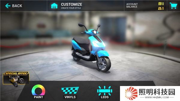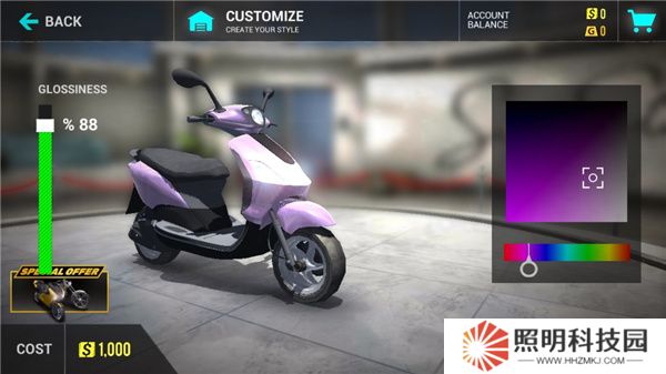1、游戲擁有著各種造型不一的摩托車可以選擇和搭配全部種類的肌膚和動畫特效