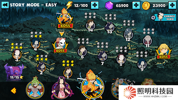2、英雄角色們以鬼滅之刃動漫作為原型進行設計,極大程度的增加了游戲的趣味性和可玩性。