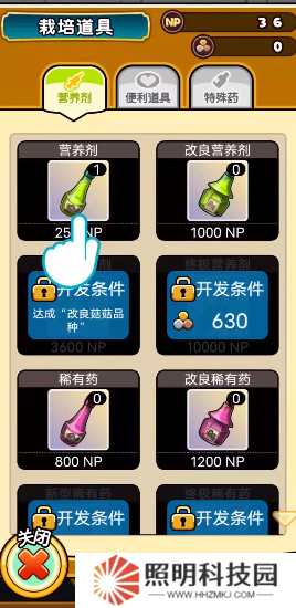 8、在道具的界面當中,你可以使用不同的道具來讓自己的菇菇更好的進行生長。