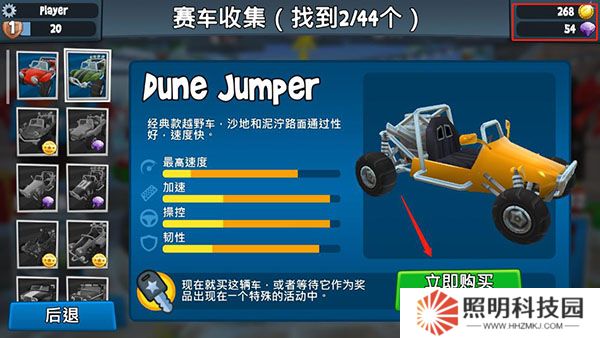 3、玩家們選擇自己喜愛的賽車點擊右下角立即購買即可。