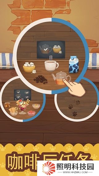 3.完成咖啡廳任務(wù),獲取大量金幣獎勵,制作美味的咖啡提供給顧客,清理爪印,照顧可愛的小貓咪們。