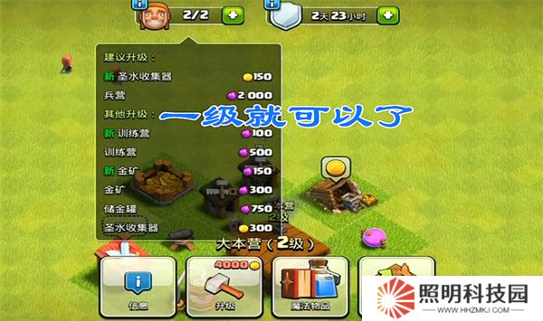 那樣和穩本升級有什么區別,所以建議絕大多數的建筑只升一級就可以了,例如采集器、和一些防御建筑,因為在這個等級你的“資源”花得很快,所以被打的幾率就很小,所以升級這些建筑有點浪費時間,我們要把“工人”用在刀刃上。