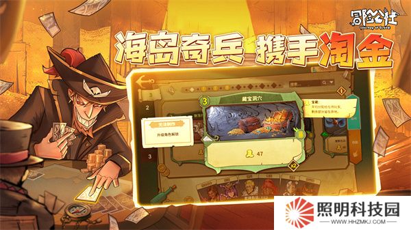 2、這是一款融合桌游與策略卡牌玩法的在線“友盡”卡牌游戲。你將表面友好的和三位玩家一起前往失落群島尋找寶藏,背地卻暗下臟手、攜款逃跑、坑害隊友,來搜刮最多的金錢,最終取得勝利。