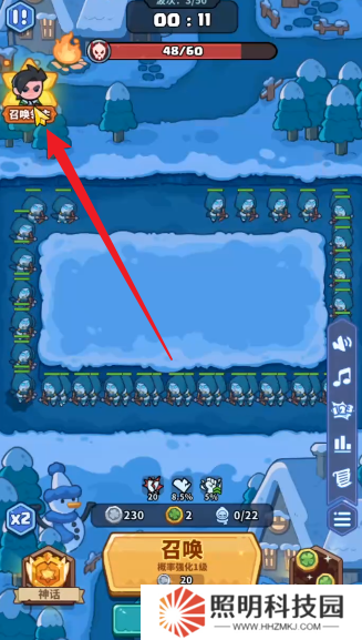 3、你可以點擊左上角的召喚領主,來讓其與怪物之間進行作戰。