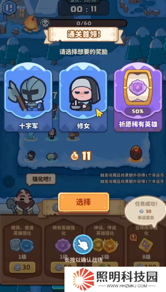 3.其中將會存在著各種英雄角色,你可以根據戰斗關卡的需要來選擇合適的英雄角色進行出戰,以此更加順利的獲得勝利。