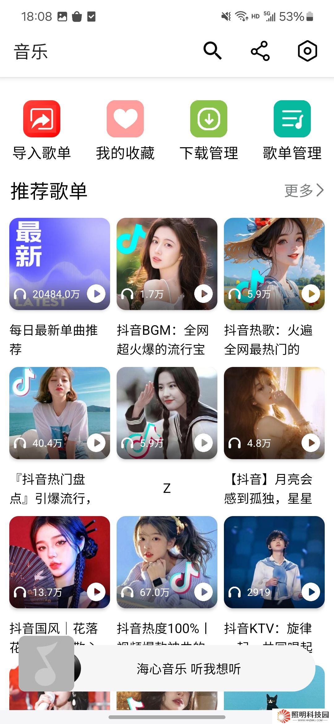 海心音樂app最新版使用教程:1、進入app以后,你就可以聽到海量的免費音樂了