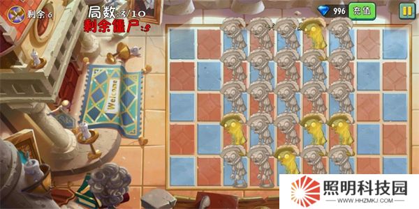 1、因為不同人打這一關僵尸的位置肯定是不一樣的,所以這里只能給大家?guī)硇【巶€人過關時的場景,圖均為當時的截圖,是個人局數(shù)3的僵尸分布情況。