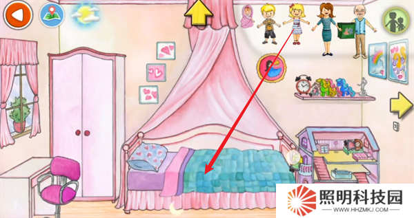 2、將角色拖動到床上之后,就能夠進行睡覺的操作。
