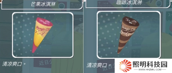 冰淇淋買(mǎi)芒果冰淇淋和咖啡冰淇淋。