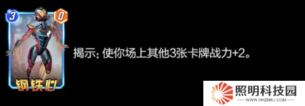 【鋼鐵心】的揭示效果可以為你的其他3張卡牌提供力量加成。