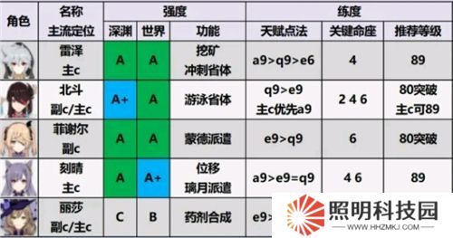 北斗>刻晴>雷澤>菲謝爾>麗莎