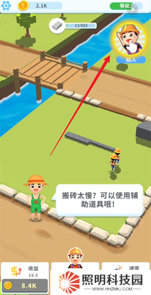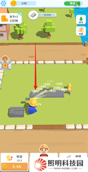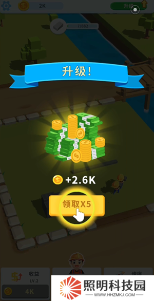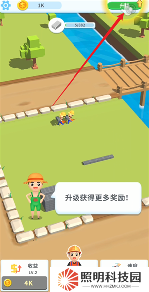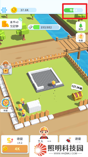 2、隨著場景內(nèi)工人的建造進(jìn)度推進(jìn),在右上角可以看到等級的提升進(jìn)度。