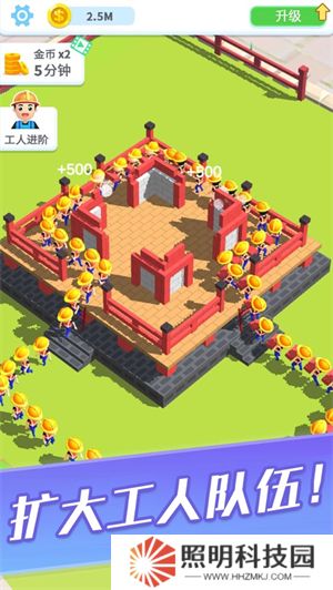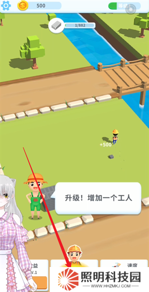 2、點擊工人下方的按鈕進(jìn)行升級,就能夠增加自己工程隊的人數(shù)。
