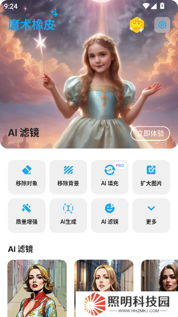 魔術橡皮高級版介紹:魔術橡皮是一款圖片處理軟件,支持圖片移除背景(摳圖)、圖片移除對象、圖片變清晰、擴大圖片、AI濾鏡、AI填充、AI生成(AI繪圖)、可以根據一段文字描述生成圖片等。無需登錄、沒有廣告、不限次數。