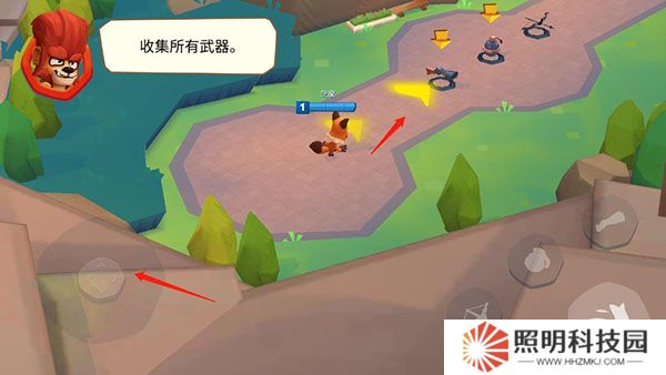 3、主要的游戲玩法非常簡(jiǎn)單,先跟著新手的提示來收集武器。