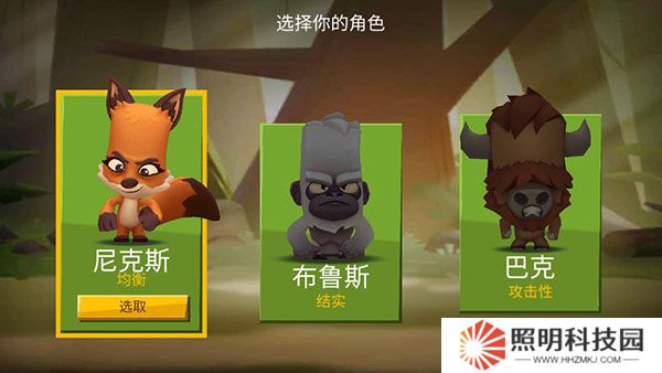 1、玩家們?cè)谙螺d安裝完成之后啟動(dòng)游戲,首先需要從三種不同的動(dòng)物角色之中進(jìn)行選擇,它們會(huì)分別擁有均衡、結(jié)實(shí)、攻擊性這三種特性。