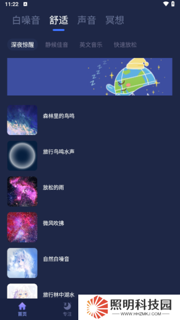睡眠小屋VIP免費版使用教程;1、進入app以后,你就可以看到很多助眠的音樂了