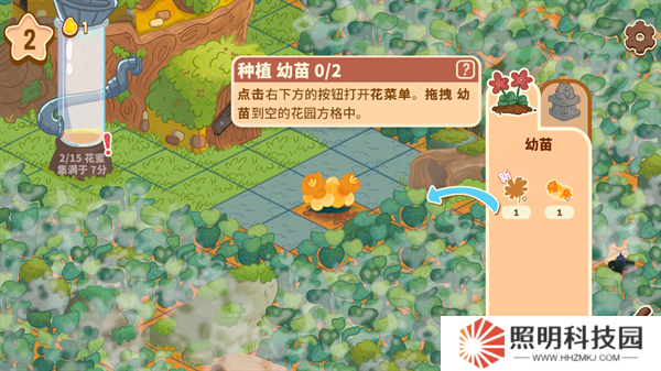 7、將花朵菜單里面的幼苗拖動到花園的方格當中,就能夠完成種植。