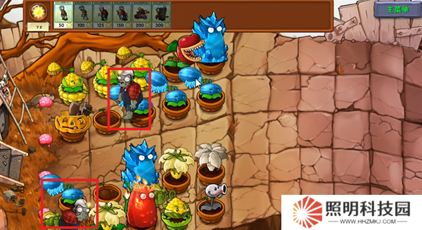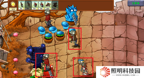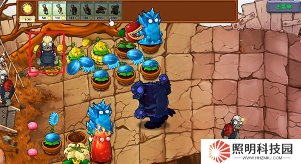 2、投籃僵尸前進(jìn)時,在最前方放置一個普通僵尸。