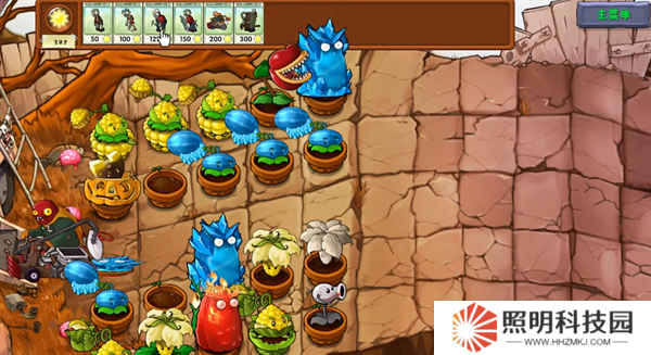 7、最后第三行放置普通僵尸,第五行放置梯子僵尸以及撐桿跳僵尸就能夠過關(guān)。